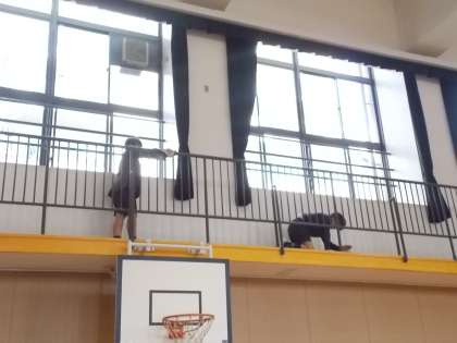 明日のNKT集会にむけて、5・6年生の児童が会場準備、玄関や講堂の清掃、進行の確認など各係に分かれて準備を行いました。