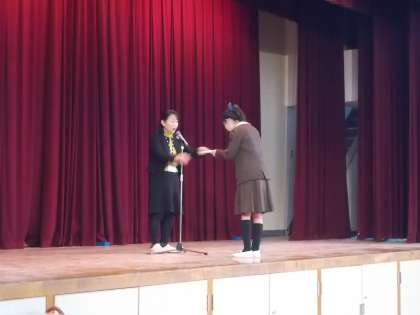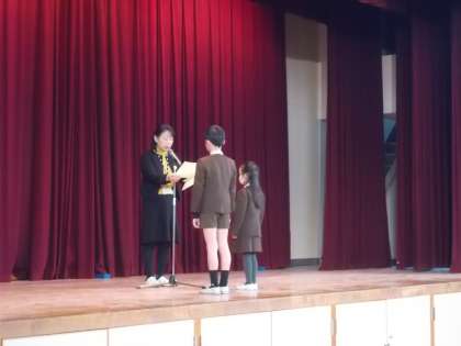 お話の後、夏休みや授業で描いた絵で入選した児童の表彰がありました。今年度も残り約1か月です。1年間のまとめを行うとともに、それぞれの目標に向かって取り組んでもらいたいです。