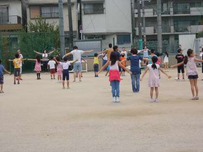 21日から朝6時30分よりラジオ体操をしています。事前に申込書を提出していない人も参加可能ですので、ぜひご参加ください。