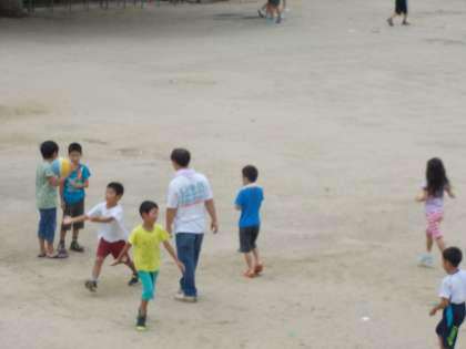 ラジオ体操をした後、大なわをしたり、ドッジボールをしたり、自由に7時まで校庭を開放しています。