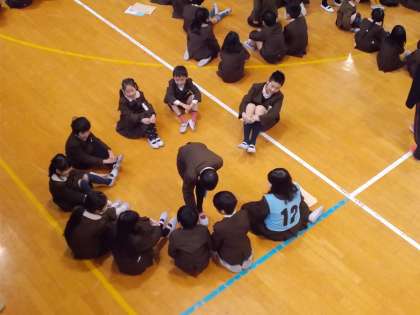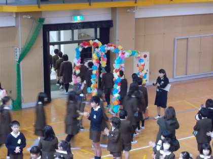 です。なかよし班の友だちからカードをもらった6年生は、一人一人と握手をしていました。みんなが笑顔になっていました。