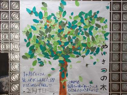 2月のあいさつ週間から取り組んでいるあいさつの木。登校時に元気よくあいさつができた登校班に葉を渡していますが、どの班も元気よくあいさつができるようになり、木がたくさんの葉でいっぱいになりました。門の前だけでなく、廊下や階段、教室でもあいさつの声が多く聞こえるようになってきました。来週からは「あいさつの木2」が玄関ホールに置かれます。色づくのが楽しみです。
