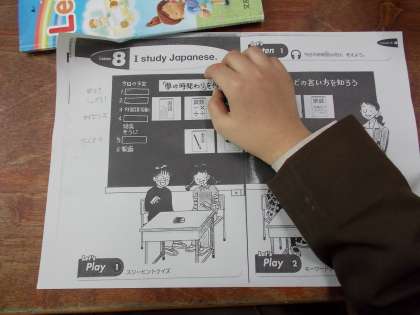 今週の英語では、学校で学習する教科名を英語で何というか学習しました。ベンジャミン先生の英語を聞いて繰り返し発音し、慣れていきました。聞いたことのない英語の連続に戸惑ってはいましたが、意欲的に取り組み、英語で時間割表をつくりました。