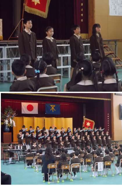 入学式では児童会の6年生が歓迎の言葉を、2年生が歓迎の言葉や歌、演奏を発表しました。どちらの発表も立派で、1年生はとても喜んでいる様子でした。