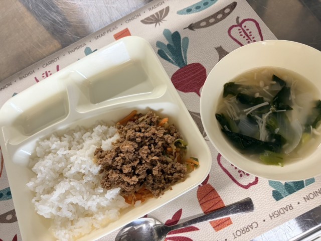 今日の献立は、○ビビンバ○トック○牛乳 でした。