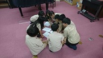 2時間目は、環境問題について考え、グループでごみの分別のゲームをしました。