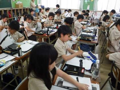 3年生は初めて毛筆で文字を書きました。