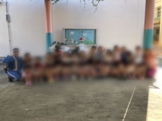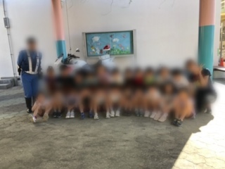今日は幼稚園の周辺の安全指導に警察の方がこられました。白バイに乗せてもらって写真を撮らせていただきました。