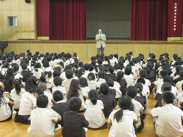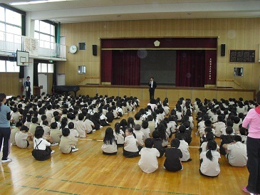 講堂に避難した後は、校長先生や大淀警察署の方のお話を聞きました。