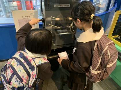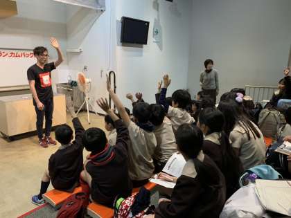 向こうでは、プラネタリウムを見たり、サイエンスショーでブーメランが戻ってくる仕組みを教えてもらったりしました。昼からはグループで展示物を見たり体験したりしながら学びました。