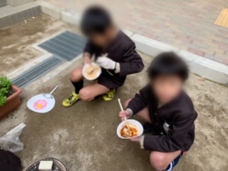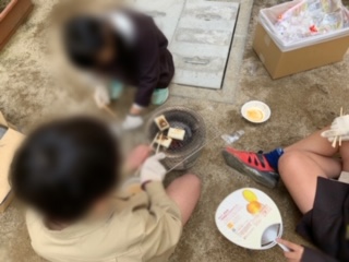 本日、七輪体験をしました。炭を入れて火を起こすのに苦戦しましたが、自分達で焼いたお餅は美味しかったです。