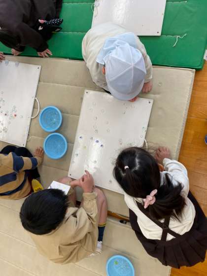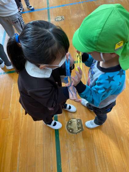 1年生は、保育所・幼稚園のみなさんに優しく、丁寧にむかしあそびを教えてあげる姿が見られました。