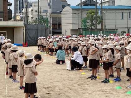 新型コロナウイルスの影響で、なかなか全校児童が一斉に揃う機会がありませんでしたが、ようやく2〜6年生全員で1年生を大淀小学校へ迎えることができました。