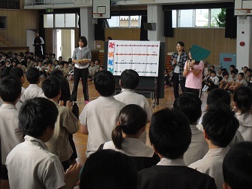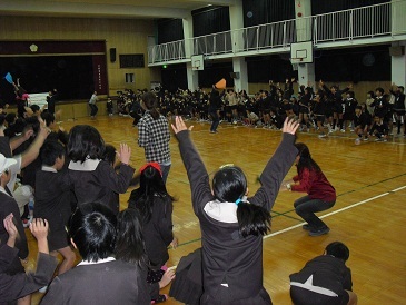 全校で4つのパートに分かれて手拍子やお腹・太ももを打ちながら演奏しました。