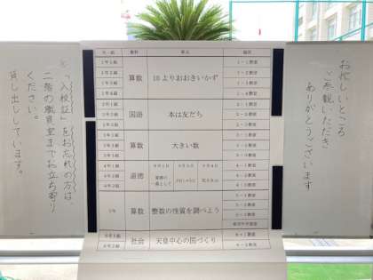 暑い中でしたが、本日のご参観ありがとうございました。また、3分割での学習参観にかかる事情をご賢察・ご理解いただき感謝申しあげます。