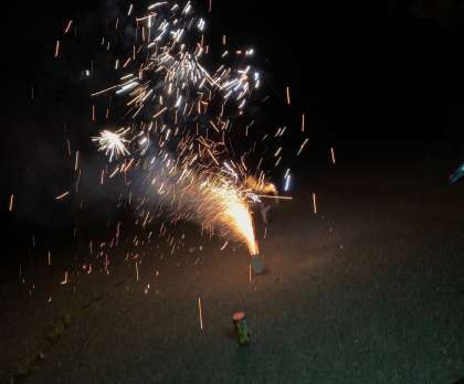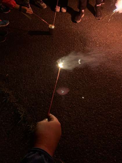 花火大会では、打ち上げ花火や手持ち花火をして楽しみました。