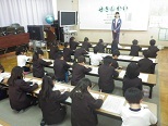 1・2年生は多目的室で硬筆、3〜6年生は講堂で毛筆での書写に取り組みました。