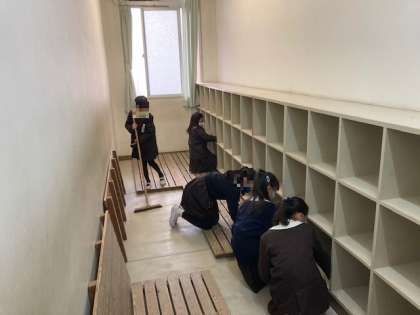 児童たちは普段の掃除場所に加え、みんなが使う場所(手洗い場や教室の床)をピカピカにするよう頑張って掃除をしていました。