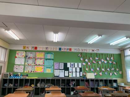 6年生の教室の後ろには、感謝状やメダルが掲示されていました。