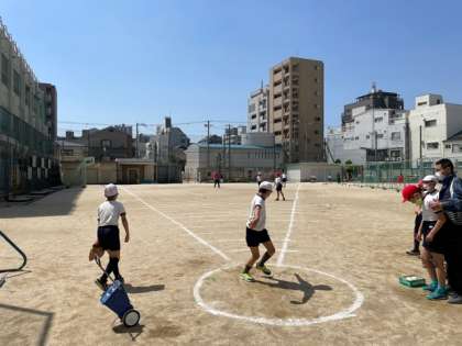 今週から新体力テストがスタートしました。運動場では、5年生がソフトボール投げに取り組んでいました。昨年よりも記録が伸びるように頑張って取り組んでもらいたいです。