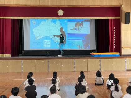新しいALTの先生の紹介がありました。先生の生まれた国、家族、好きな食べ物などを教えてもらいました。これからの外国語活動も楽しく取り組んでいきたいと思います。