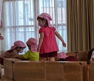 年長児のきりん組さんが年少児のうさぎ組さんも楽しく遊べるにはどうしたらいいのかを考えながらボールプールの場やサーキット遊びのコースを作ってくれました。子ども達は「楽しいね」「あれやってみよう」と、元気に遊んでいました。