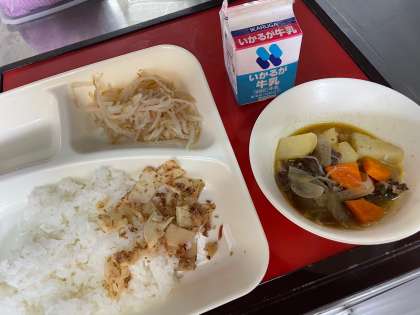「肉じゃが」は、牛肉、じゃがいもを主材に、糸こんにゃく、玉ねぎ、にんじんを使った毎回好評な定番の煮ものです。
