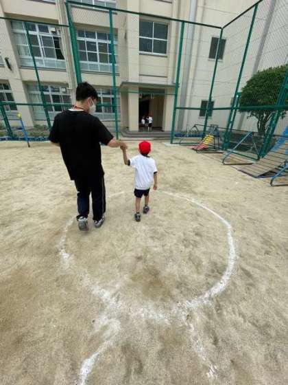 1年生は今、ソフトボール投げをしています。投げ方に気をつけて、みんなそれぞれの新記録をねらいます!しっかり並んで順番をまったり、投げたボールを取ってきたりしてみんな大活躍です!