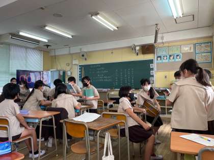 国語科の学習で、委員会活動の時間に5年生が6年生にインタビューしました。事前に質問することを考えて、聞いたことをしっかりとメモすることができていました。
