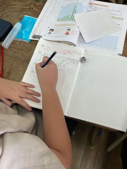 「折れ線グラフと表」の学習は、習熟度別学習を行っています。学年3クラスを子どもの希望をもとに4つのクラスに分けて、それぞれの進度に合わせて学習を進めています。