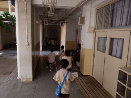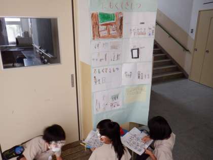 1年生と2年生でグループを組んで、2年生のお兄ちゃんお姉ちゃんが1年生に学校の各教室の説明をしてくれました。