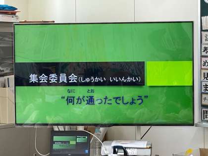 2回目の児童集会は、「何が通ったでしょう」クイズでした。テレビにくぎづけで、通ったものが何か考えていました。