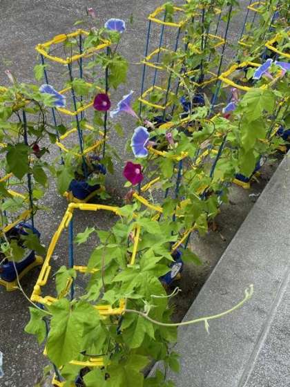 みんなで毎日お水をあげて、大切に育てていたアサガオの花が咲き出しました。とてもきれいですね。