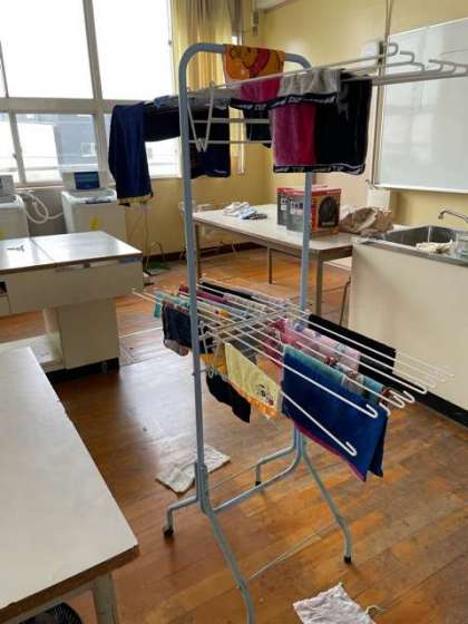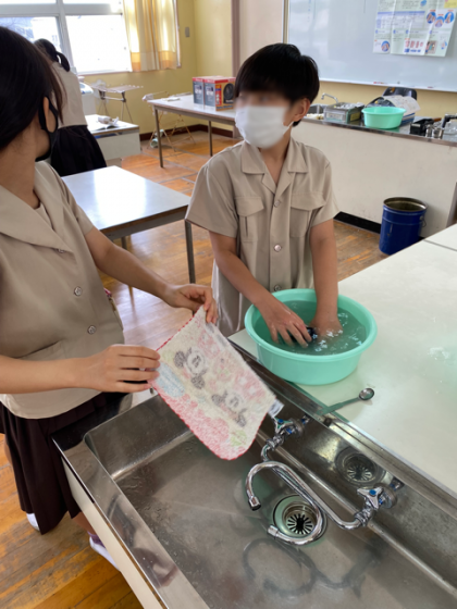「夏を涼しくさわやかに」の学習の一環として、洗濯をしました。今は洗濯機で洗うことが多いけど、今回は手洗いにチャレンジです。