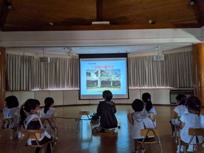 パワーポイントを見て1学期の生活を振り返ったり、園長先生から夏休みも元気に過ごすようにお話を聞いたりしました。