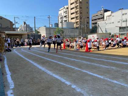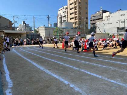 プログラム3番、4年生による「赤白対抗リレー〜そして伝説へ〜」の様子です。初めてのバトンパスでしたが、上手にできました!