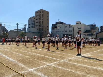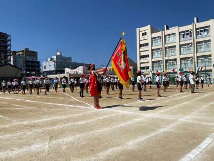 閉会式の様子です。6年生は運動場で、他の学年は教室でリモートでの参加でした。結果発表の時には、各教室から歓声が聞こえました。
