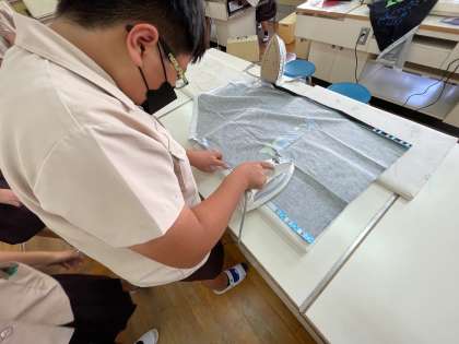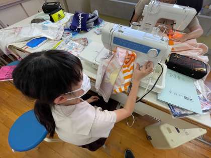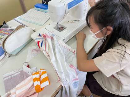 家庭科の学習で、エプロンを作っています。一人ひとり集中して、丁寧に作業を進めてていました!ミシンやアイロンの使い方も慣れているようでした。