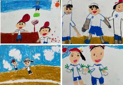 パスで運動会の絵を描きました。競技の絵を丁寧に描きました。一人一人、工夫されていて、すばらしい絵がたくさん掲示されていました。