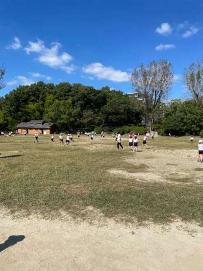 ドングリやバッタを見つけて、みんなで楽しく遊びました。今からお弁当を食べます!青空の下みんなで食べるお弁当は最高です!