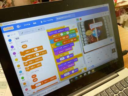 ある児童が自主学習で作成したプログラミングを見せてくれました。ゲーム形式で、問題に取り組むようなものでした。こちらも作り方を知りたくなりました!
