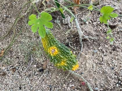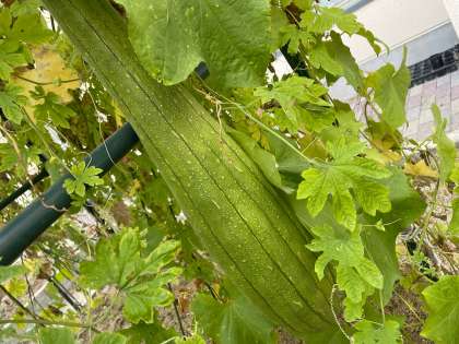先週の気温とは変わり、急に寒くなりました。学習園のヘチマとゴーヤです。色が少し変わってきていました。