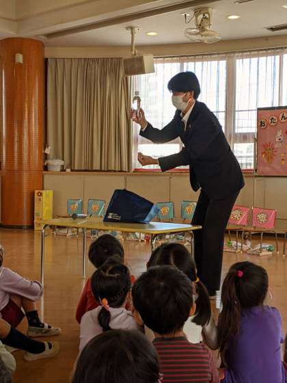 担任の先生がしている姿をよ〜く見ながら「あっ、わかった。ぎゅって押すと動くんだよ」と、友達同士で試しながら空気についても少し触れることができました。