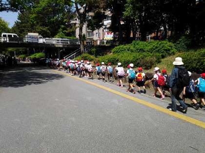 1年生にとっては初めての遠足で、さらに気温が上がってきたので、学校から駅までですでに疲れていました。