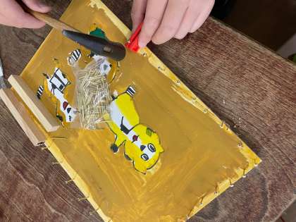 図画工作科の学習で、くぎうちをしました。最初は恐る恐るやっていましたが、慣れると上手くくぎをうつことができていました。