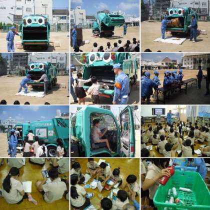 収集車から流れる音楽や車の仕組みを教えてもらい、大きなたんすが細かくくだかれていくところを見せてもらいました。