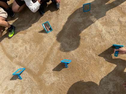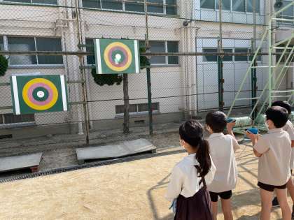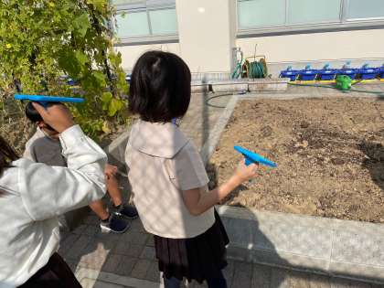 鏡を使って、光の性質を調べました。初めて体験する児童もいて、楽しく光の進む方向を見ていました。