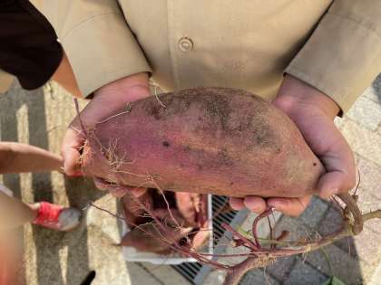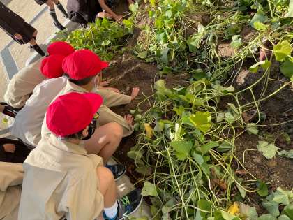 春から大切に育ててきたさつまいも。ようやく掘ることができました。あまりの大きさに子どもたちもびっくり。たくさんのさつまいもをほることができてとても楽しそうでした!