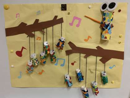 今月の掲示はミノムシの音楽会です。