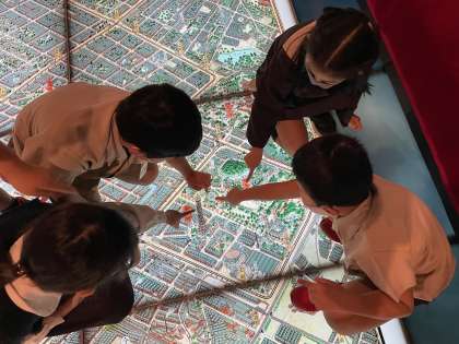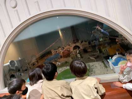 大阪くらしの今昔館では、大阪のむかしの様子や地図など、熱心に見学することができていました。見学して気づいたことを、しっかりしおりにメモしていました。